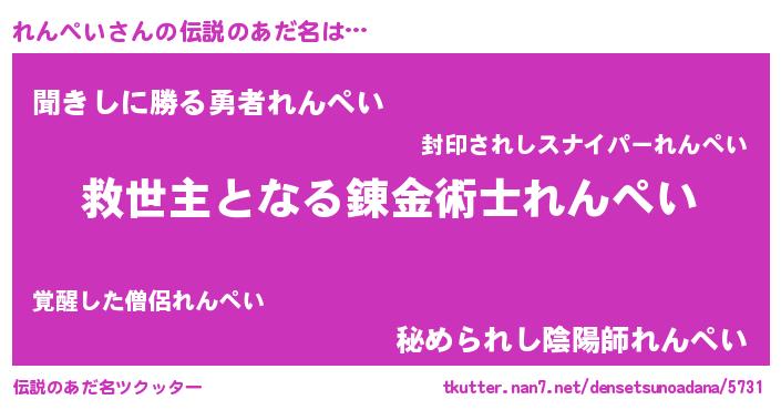 | ヒーロー風カッコイイあだ名 | 『天空の使者れんぺい』『ネオレンペイ』 |