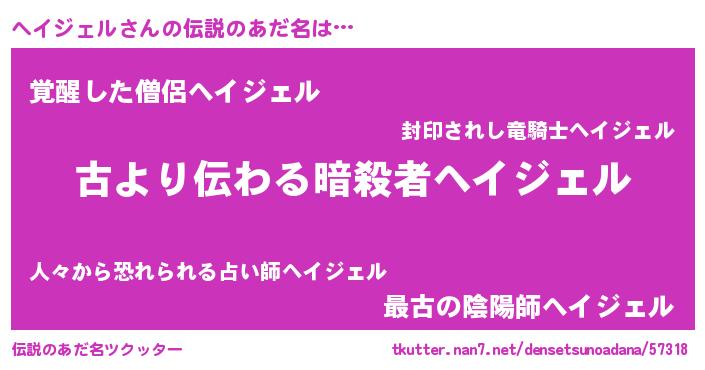 | 意味不明あだ名 | 『永久保存ヘイジェル』『自称ヘイジェル』 |