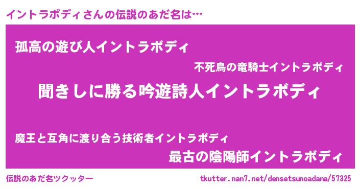 | 意味不明あだ名 | 『住所不定無職イントラボディ(2歳)』 |