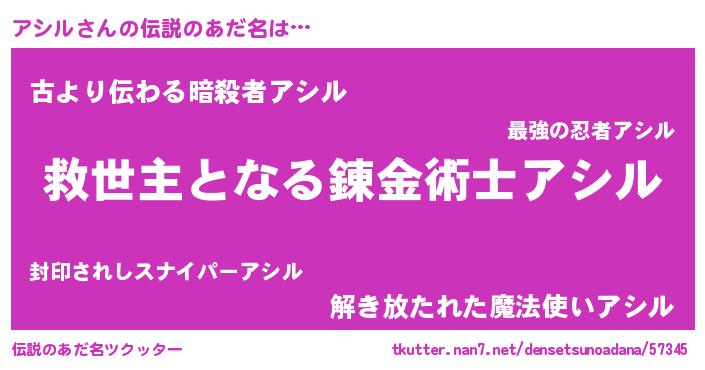 | 男性向けラノベタイトル風あだ名 | 『ノーゲーム・ノーアシル』 |