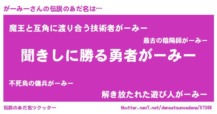 | ヒーロー風カッコイイあだ名 | 『ネオガーミー』『愛の使者がーみー』 |