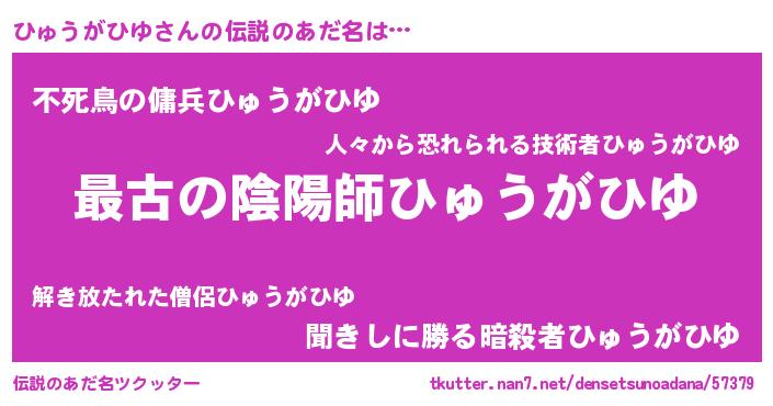 | 女子向けラノベタイトル風あだ名 | 『乙女ゲームの破滅フラグしかない悪役ひゅうがひゆに転生してしまった…』 |