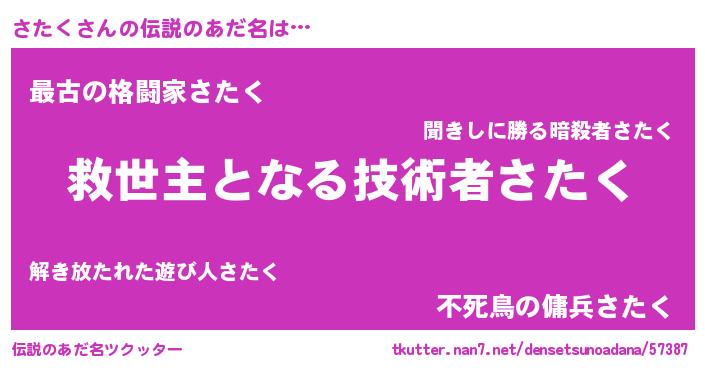 | 男性向けラノベタイトル風あだ名 | 『さたくに滅ぼされるだけの簡単なお仕事です』 |