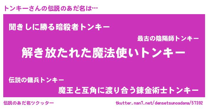 | ヒーロー風カッコイイあだ名 | 『仮面トンダー』『暗黒騎士トン』 |