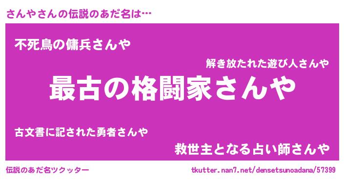 | 意味不明あだ名 | 『自称さんや』『さんやフォーエバー』 |