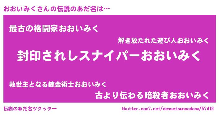| ヒーロー風カッコイイあだ名 | 『スーパーオオイミク』『ネオオオイミク』 |
