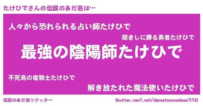| 女子向けラノベタイトル風あだ名 | 『たけひでストレイドッグス』 |
