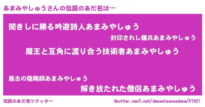 | ヘコむあだ名 | 『あまみやしゅう(笑)』『あまを』 |