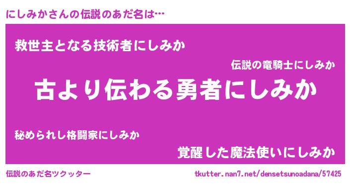 | 意味不明あだ名 | 『たけのこ科にしみか属』『自称にしみか』 |