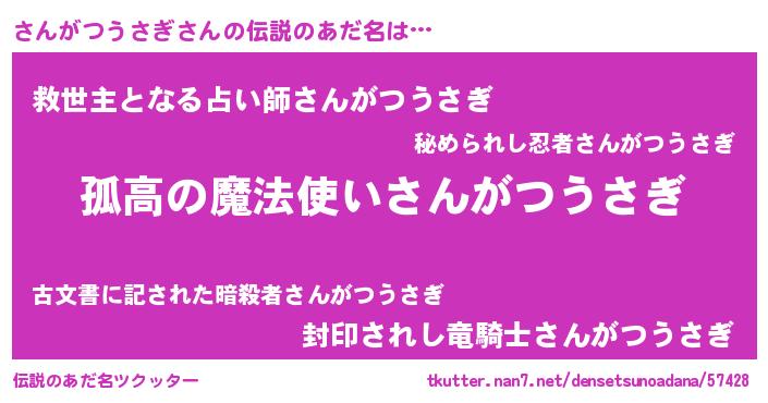 | 意味不明あだ名 | 『自称さんがつうさぎ』 |