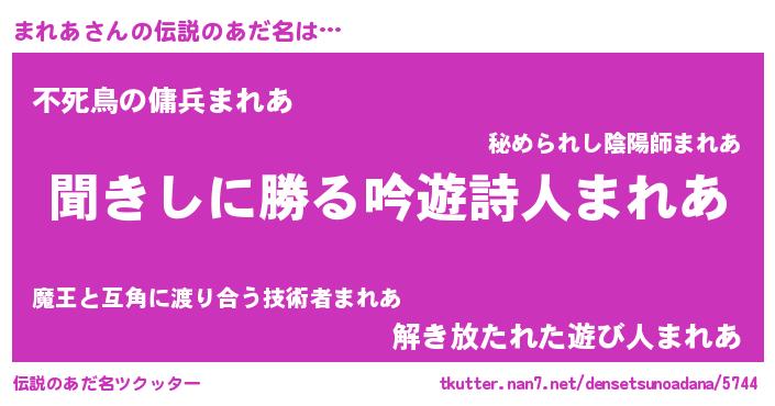 | 男性向けラノベタイトル風あだ名 | 『まれあという概念が存在しない退屈な世界 』 |