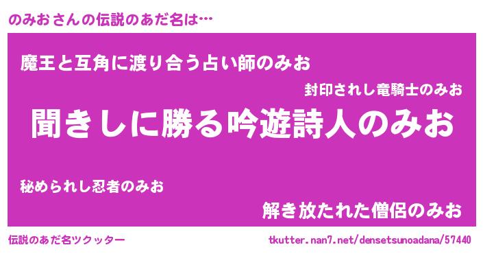 | 意味不明あだ名 | 『永久保存のみお』『自称のみお』 |