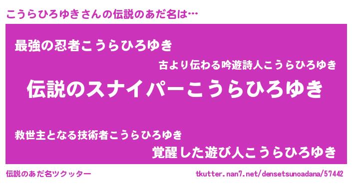 | 肩書あだ名 | 『こうらひろゆき御曹司』 |