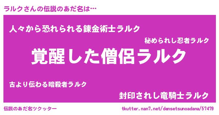 | ヒーロー風カッコイイあだ名 | 『炎刃騎士ラル』『天空の使者ラルク』 |