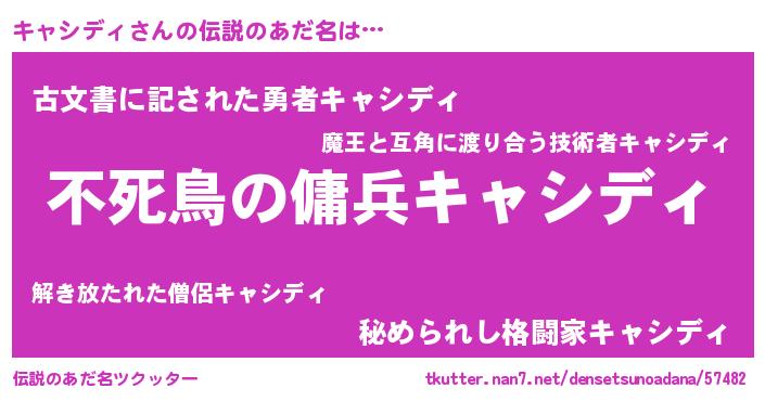 | 女子向けラノベタイトル風あだ名 | 『キャシディ姫と円卓の騎士』 |