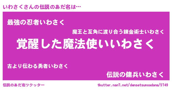 | 男性向けラノベタイトル風あだ名 | 『いわさくの嫁は女の子じゃないと思った?』 |