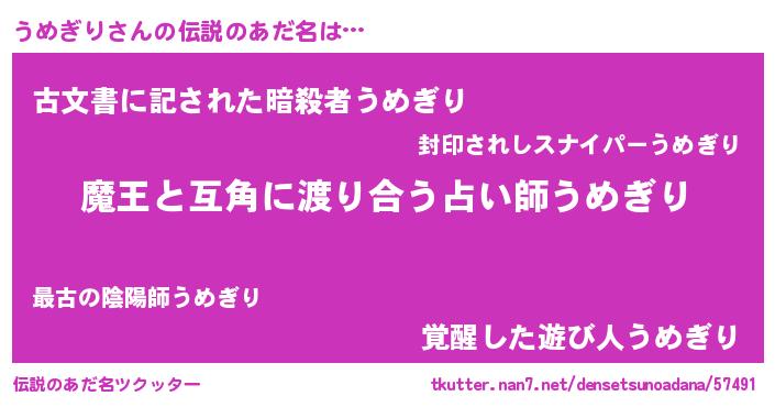 | ヒーロー風カッコイイあだ名 | 『愛の使者うめぎり』『ネオウメギリ』 |