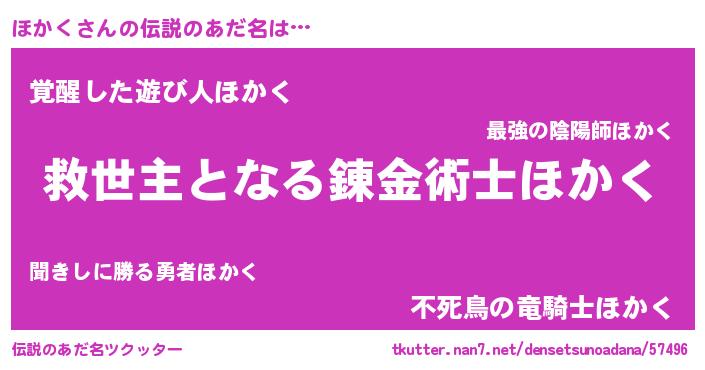 | ヒーロー風カッコイイあだ名 | 『究極戦士ホカク』『慈愛の使者ほかく』 |
