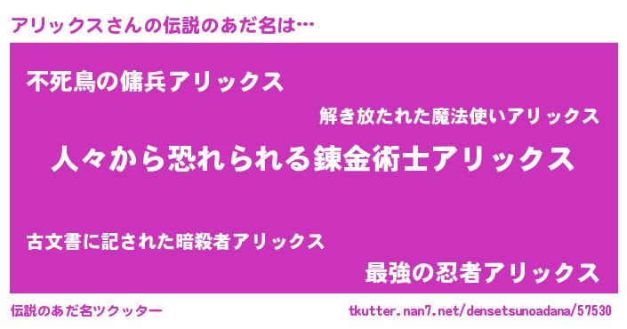| ヒーロー風カッコイイあだ名 | 『正義の使者アリックス』『仮面アリダー』 |