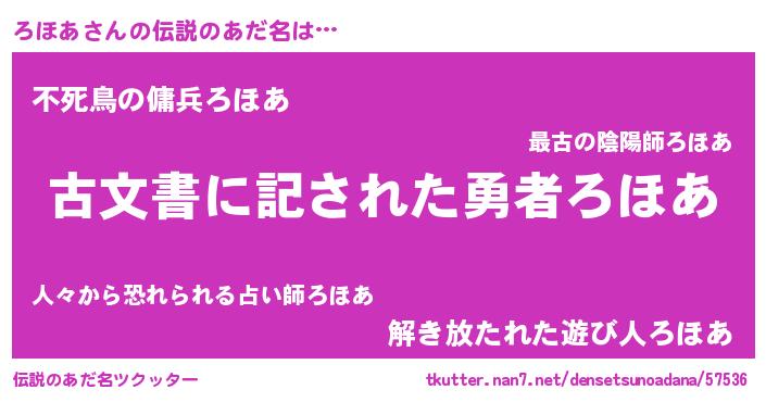 | 意味不明あだ名 | 『自称ろほあ』『永久保存ろほあ』 |