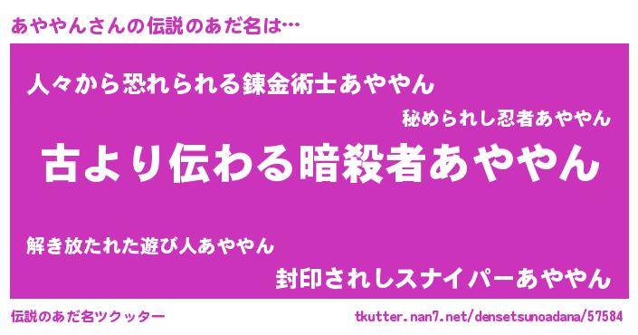 | ヒーロー風カッコイイあだ名 | 『ネオアヤヤン』『仮面アヤダー』 |