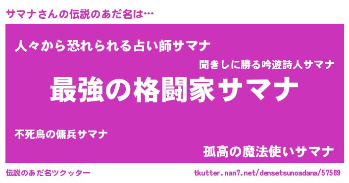 | ヒーロー風カッコイイあだ名 | 『ウルトラサマナマン』『最強戦士サマナ』 |