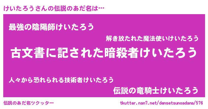 | 意味不明あだ名 | 『永久保存けいたろう』『自称けいたろう』 |