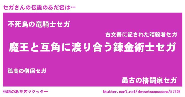 | 女子向けラノベタイトル風あだ名 | 『セガ恋絵巻』『セガ伯爵の花嫁』 |