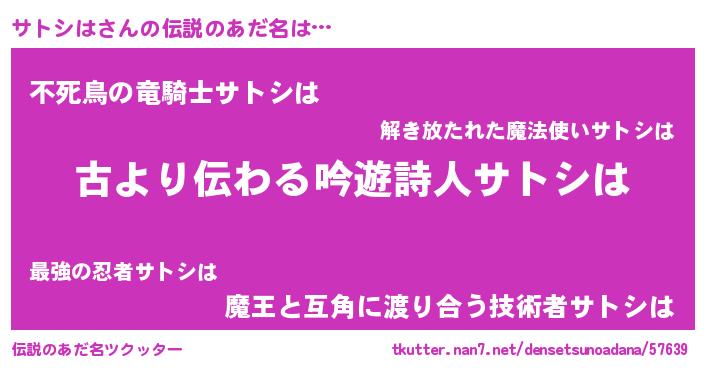 | 女子向けラノベタイトル風あだ名 | 『サトシはの契約王妃』『闇のサトシは』 |