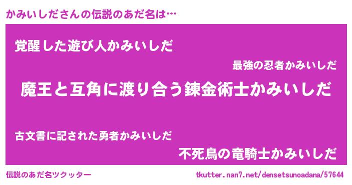 | 男性向けラノベタイトル風あだ名 | 『おまえをオタクにしてやるから、俺をかみいしだにしてくれ! 』 |
