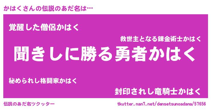 | 胡散臭い通販商品みたいなあだ名 | 『絶対に幸福をもたらす水素水…その名も「かはく」』 |