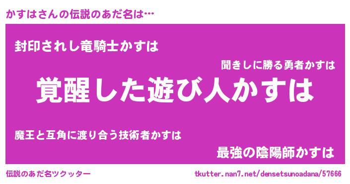| 男性向けラノベタイトル風あだ名 | 『かすはの嫁は女の子じゃないと思った?』 |