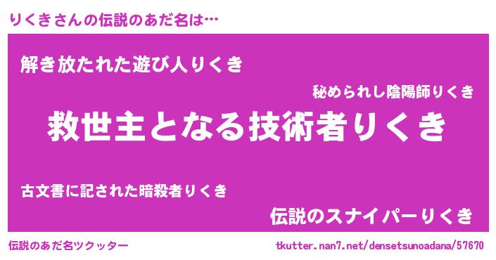 | 女子向けラノベタイトル風あだ名 | 『死神りくきの再婚』『りくき様がみてる』 |