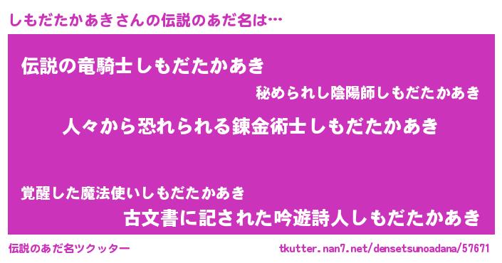 | ヒーロー風カッコイイあだ名 | 『正義の使者しもだたかあき』 |