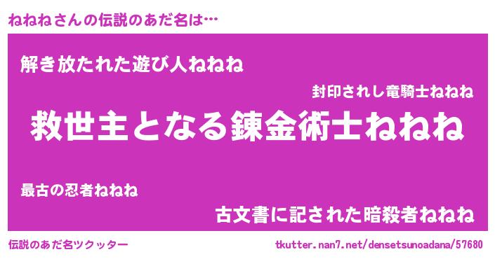 | 男性向けラノベタイトル風あだ名 | 『ノーゲーム・ノーネネネ』 |