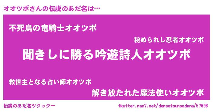| ファンタジー風あだ名 | 『オオディッシュ』『ゼオオトゥ』 |