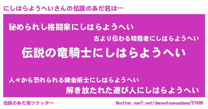 | 恥ずかしいあだ名 | 『ニシハラヨウヘイデラックス』 |