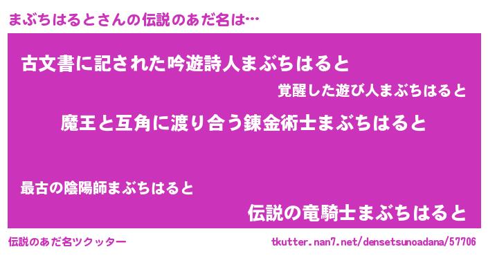 | 意味不明あだ名 | 『自称まぶちはると』 |