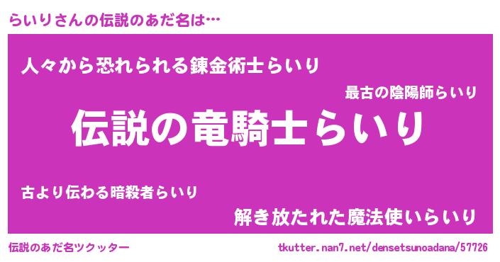 | 女子向けラノベタイトル風あだ名 | 『らいりアンティーク』 |