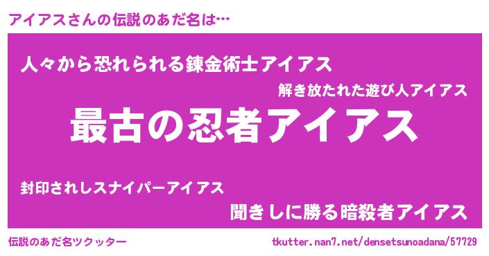 | 意味不明あだ名 | 『アイアスフォーエバー』 |