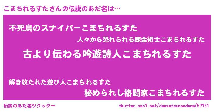 | 意味不明あだ名 | 『自称こまちれるすた』 |