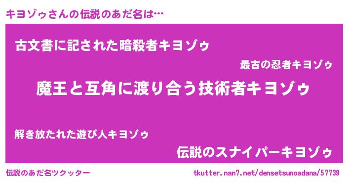| ヒーロー風カッコイイあだ名 | 『サイバー戦士キヨゾゥ』『仮面キヨダー』 |
