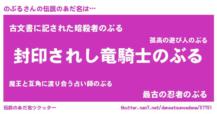 | 女子向けラノベタイトル風あだ名 | 『悪役のぶるに転生したようですが、知った事ではありません』 |