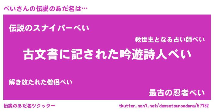 | 意味不明あだ名 | 『永久保存べい』『ペロリンべい』 |