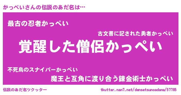 | 男性向けラノベタイトル風あだ名 | 『かっぺいの嫁は女の子じゃないと思った?』 |