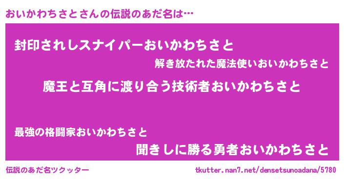 | 女子向けラノベタイトル風あだ名 | 『おいかわちさと恋絵巻』 |