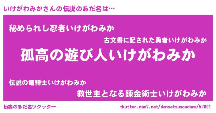 | 意味不明あだ名 | 『とにかく怪しいいけがわみか』 |