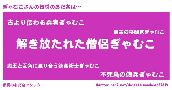 | ヒーロー風カッコイイあだ名 | 『最強戦士ギャムコ』『魔戒騎士ギャ』 |