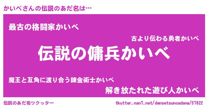 | 男性向けラノベタイトル風あだ名 | 『かいべの憂鬱』『魔弾の王とかいべ』 |