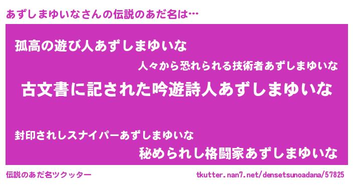 | ヒーロー風カッコイイあだ名 | 『ネオアズシマユイナ』『幻影騎士アズ』 |